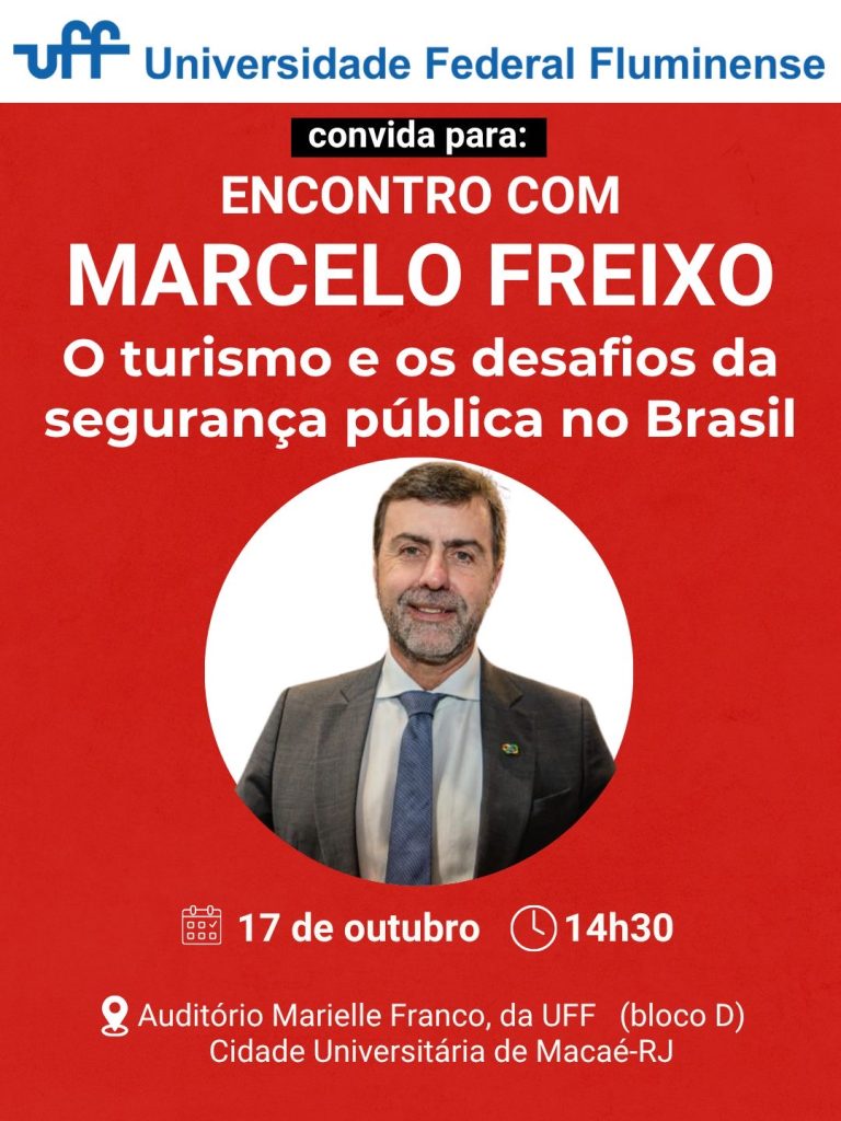 No dia 17 de outubro, sexta-feira, às 14h30min, estaremos recebendo o Presidente da EMBRATUR, Marcelo Freixo, para a palestra O turismo e os desafios da Segurança Pública no Brasil